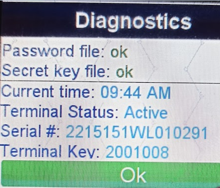 - If the terminal has any activity running at the moment (e.g. transaction processing), the diagnostics will be commenced once all active processes are completed. The diagnostics result is available at the same form in the terminal’s details.