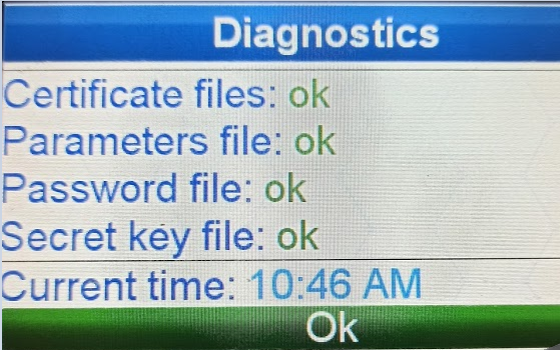 The diagnostics result is available at two places: on the terminal’s screen or on the user interface:
